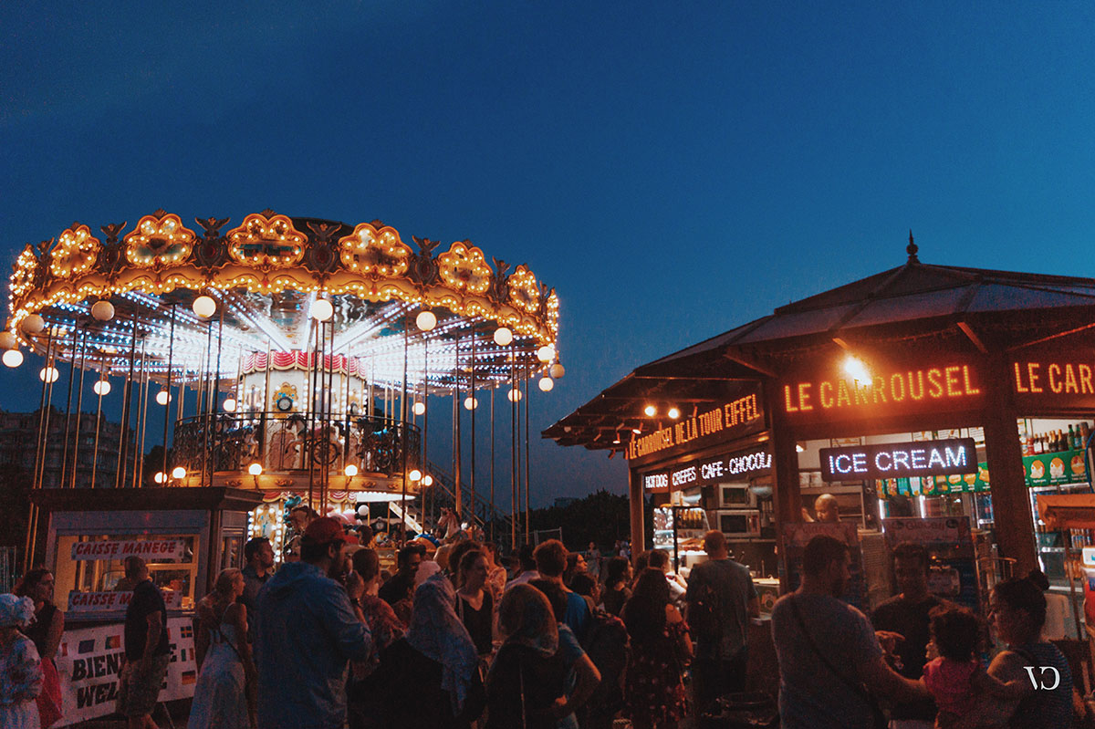 Terminando el paseo, llevé a mi mamá a unas famosas crepas bajo la Torre Eiffel que probé hace unos años cuando fui con mi mejor amiga Denisse. La envicié con una monstruosa creación de jamón con queso, servida en un cono gigante que coronaba con una porción de papas fritas. Disfrutamos con calma nuestras crepes sentadas en una banca, viendo hacia un carrusel con la Torre de fondo.