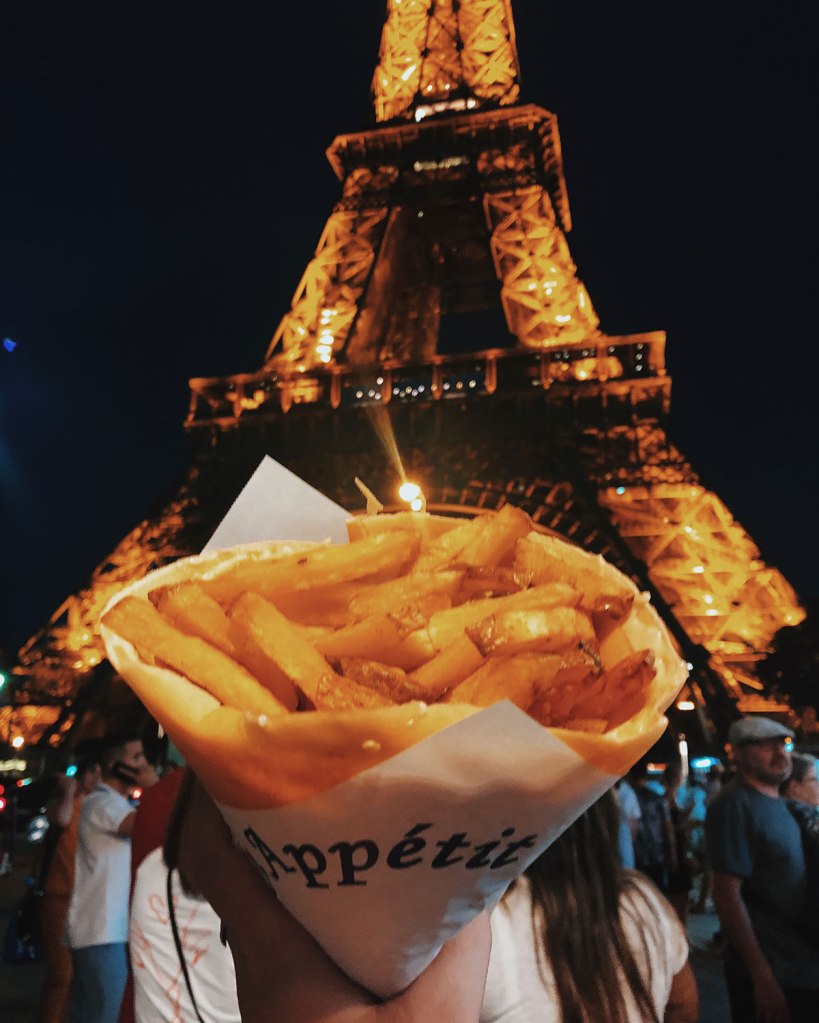 Cuando nos dio hambre, decidimos cerrar el viaje con broche de oro y fuimos a buscar una crepa a la Torre Eiffel, igual que la primera noche. Nuestro vuelo salía al día siguiente a las 12 del día.